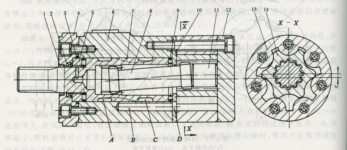 【圖4-3一種擺線馬達(dá)的典型結(jié)構(gòu)】