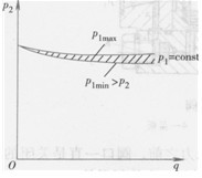 減壓閥的P2-q特性曲線如圖6-30所示。減壓閥進(jìn)口壓力Pi基本恒定時(shí),若通過(guò)的流量g增加,則閥口縫隙XR加大,出口壓力略微下降。先導(dǎo)式減壓閥出油口壓力的調(diào)整值越低,它受流量變化的影響就越大。