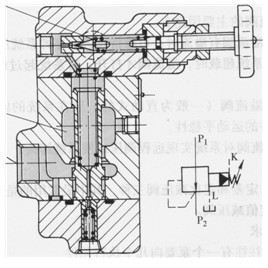 當(dāng)減壓閥的出油口處不輸出油液時(shí),它的出口壓力基本上仍能保持恒定,此時(shí)有少量的油液通過(guò)減壓閥開(kāi)口經(jīng)先導(dǎo)閥和泄油管流回油箱,保持該閥處于工作狀態(tài)。