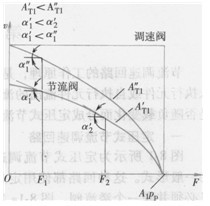 a)進(jìn)口節(jié)流式b)出口節(jié)流式來表達(dá)的。由圖及式(8-4)可見,當(dāng)溢流閥的壓力pP和節(jié)流閥的通流截面積A,,調(diào)定之后,活塞工作速度隨負(fù)載加大而減小,當(dāng)F =AiPp時,工作速度降為零,活塞停止運動;反之,負(fù)載減小時活塞速度加大。但是不管負(fù)載如何變化,回路的工作壓力總是不變的。此外,定壓式節(jié)流調(diào)速回路的承載能力是不受節(jié)流閥通流截面積變化影響的——圖8-2中的各條曲線在速度為零時都匯交到同一負(fù)載點上。
